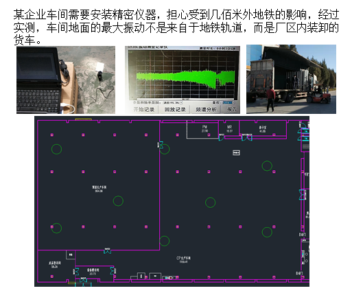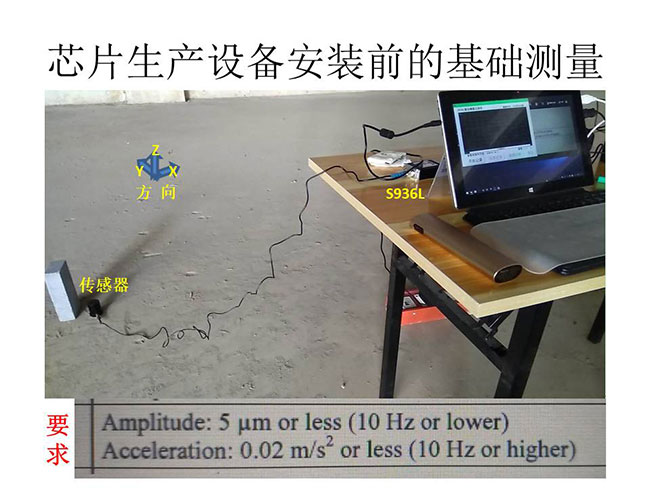 某韩资线路板生产企业,将要安装100万倍电子显微镜,对地面振动要求极高,我们针对设备厂家的要求,对车间地面进行整体测量并提交准确数据,供地面减震改造需要。使用S966-8多通道低频振动分析仪。