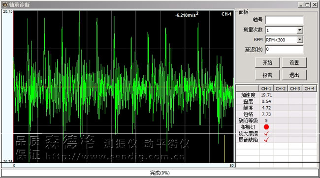 ★测量轴承产生的振动加速度信号,计算峰值、解调包络值,并计算多种轴承状态参数