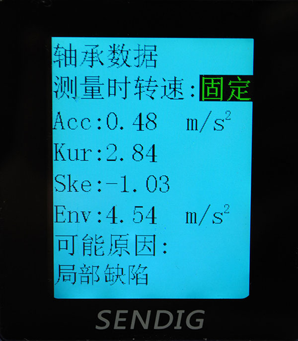 为了提高精准度,增加用户对轴承检测仪的信心,全面检测滚动轴承的缺陷(缺油、锈蚀、磨损、有杂质、点蚀、表面剥落等……),准确判断滚动轴承早期缺陷,森德格公司结合各种国际上最先进的技术和专家多年的现场实测经验,通过多参数测量,综合判断轴承状态,可以比只测量加速度和包络值的经济型仪器,得到更准确、更灵敏地结果。但参数多了,也有参数多的烦恼,这就需要用户对比多项参数,无疑增加了使用难度。鉴于此,“森德格”将多参数检测结果合成为一个综合反映轴承整体状态的‘缺陷级别’,使结果一目了然。同时又进一步提示缺陷是磨损类型还是局部缺陷类型,给出维修方向。针对往复式机械和转速不固定的机械,轴承检测更是难上加难,而潜心研发的专门算法,最大程度剔除了转速变化的影响。