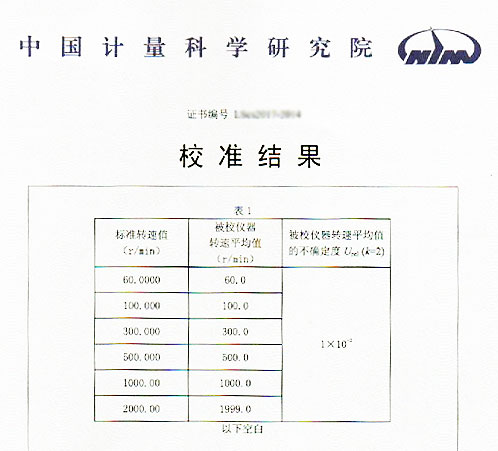 2)用户选择了转速传感器及显示套装,送检校准报告: