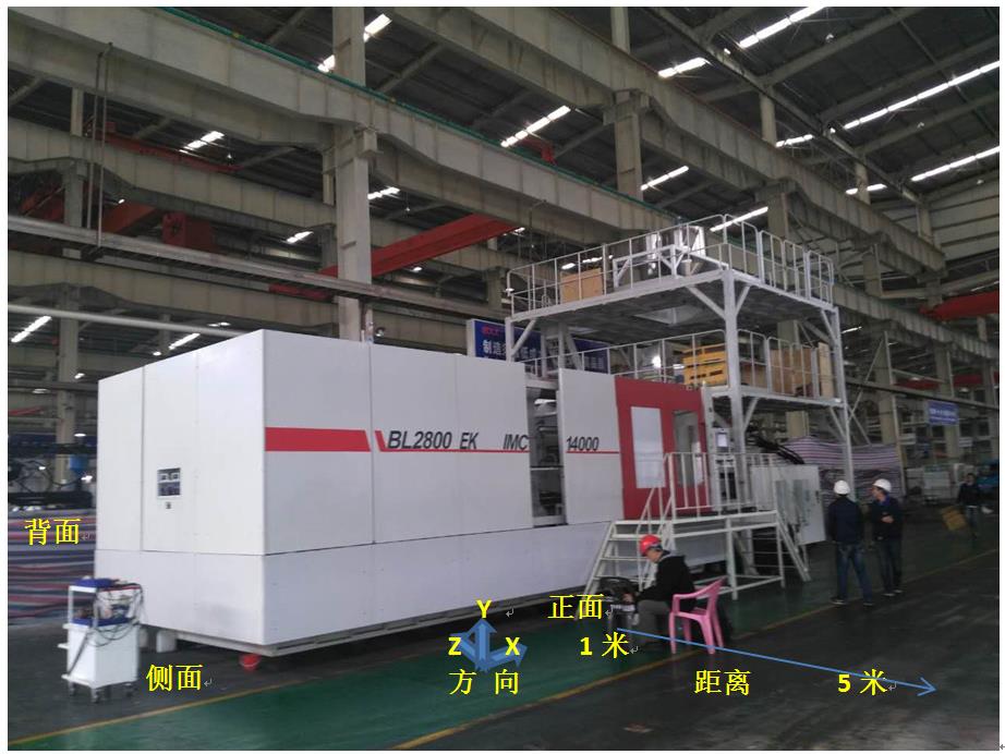 2、 注塑机地面振动测试,确认对其它生产设备的影响,使用S966低频振动分析仪。