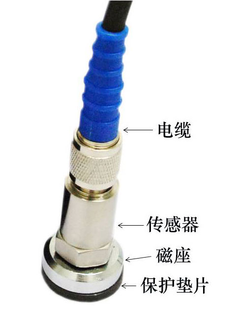 2、振动传感器,一般使用磁座,吸在被测设备上。
