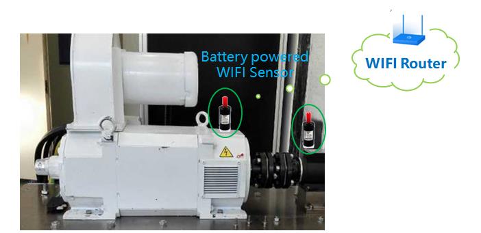Wireless sensor measure temperature & 7 vibration parameters for bearing defect detection & rotational machine fault diagnosis