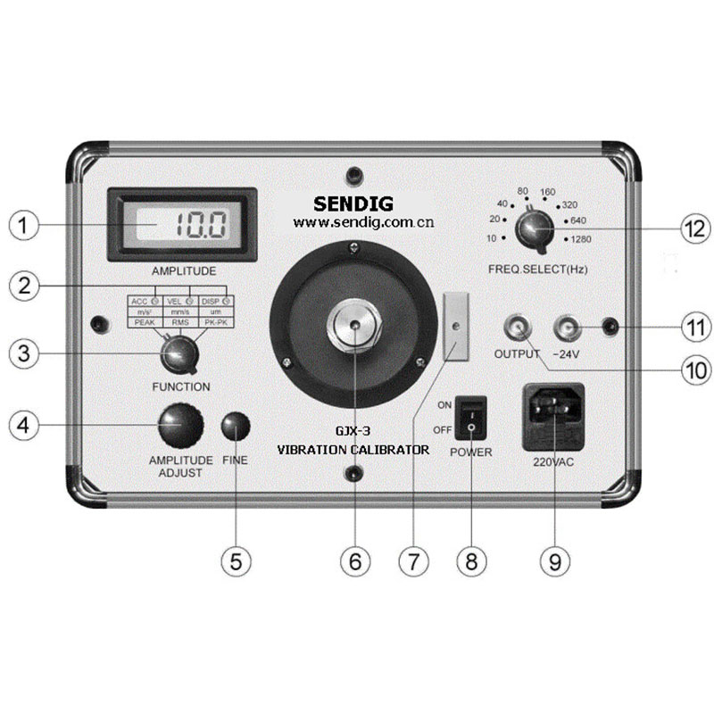 The control panel of GJX-3 Vibration Calibrator is shown as following: